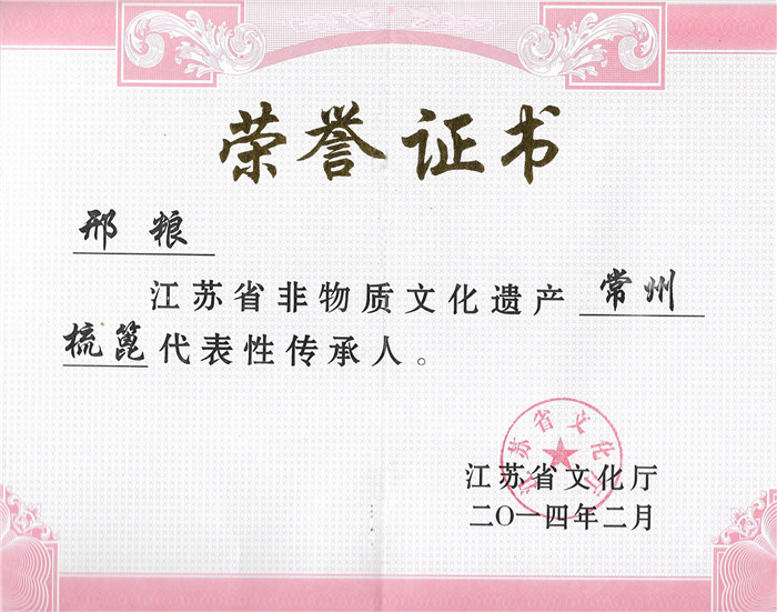 2014年2月授予邢粮常州梳篦省级代表性传承人