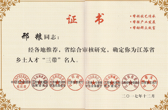 2017年12月乡土人才三带名人证书