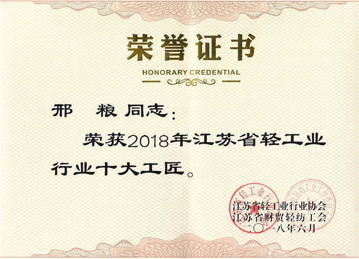 江苏省轻工业行业十大工匠